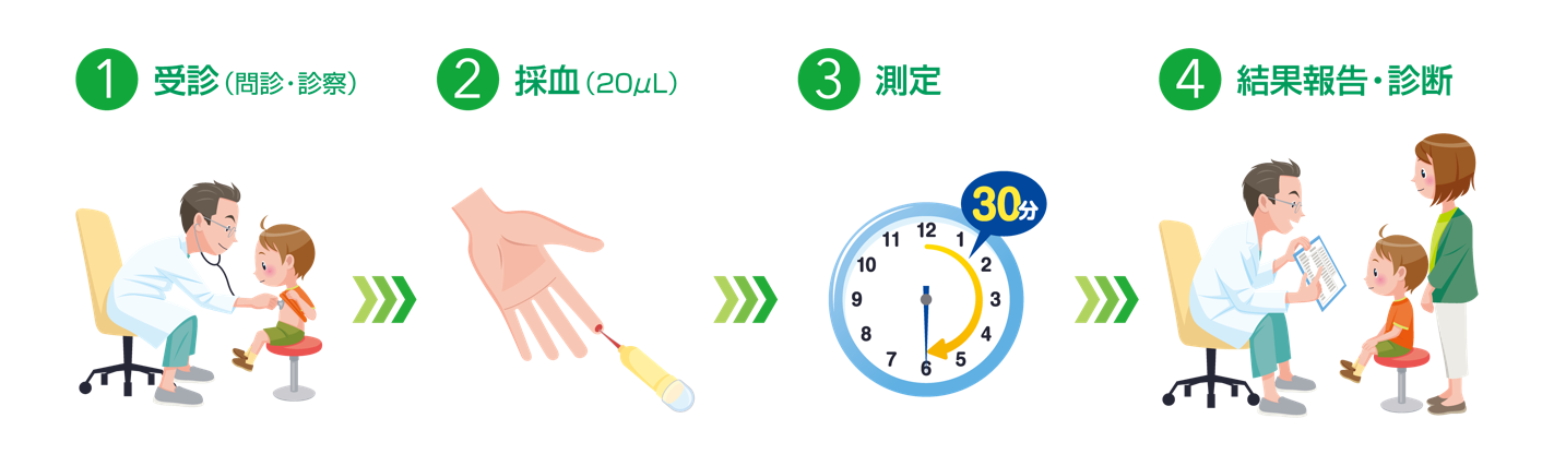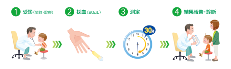 ② 注射器で採血をしないので、小さいお子さん(1歳以上)でもできます。